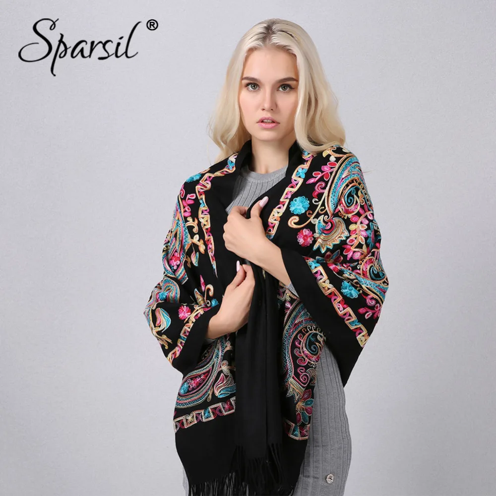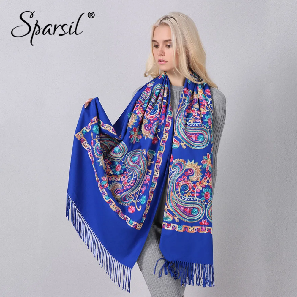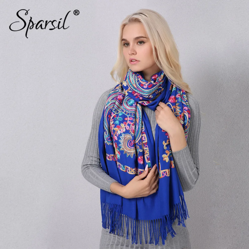 Special Offer Sparsil Frauen Kaschmir Stickerei Schal Herbst Winter Floral Quaste 200*70 cm Pashmina Blossom Schal Weiblich Wraps Muslimischen Schals Discount 50% Today!