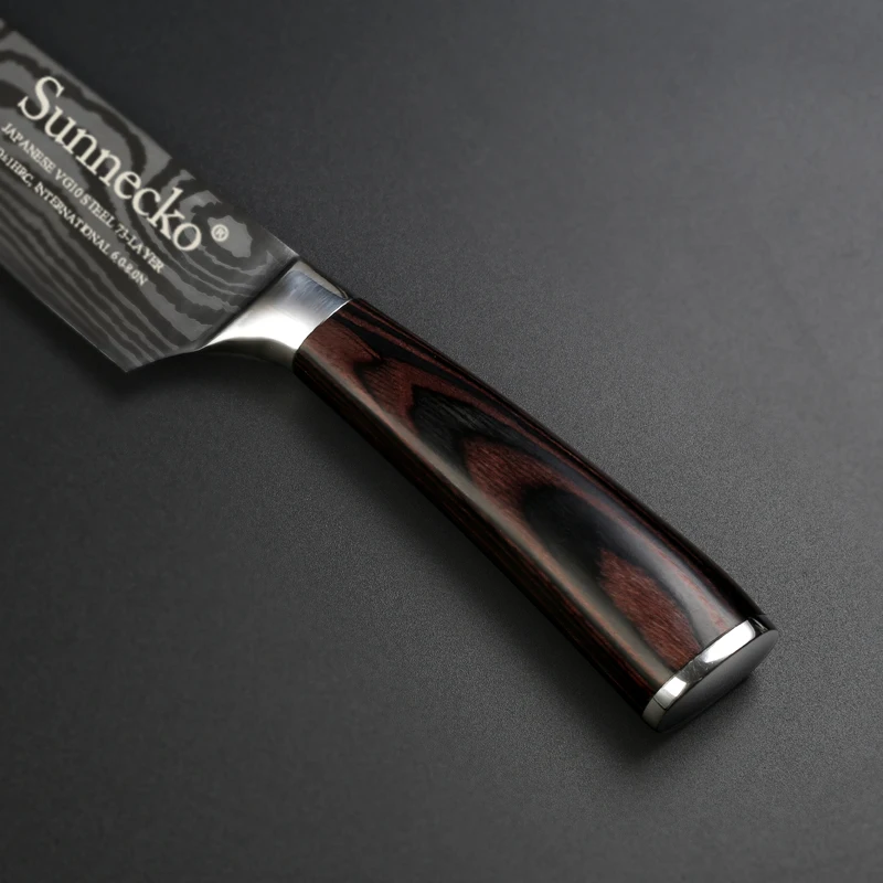 Product Name: SUNNECKO 8 zoll Kochmesser Japanischen Edelstahl Schleifen Laser Muster Profi koch Messer Scharfe Klinge Kochen Werkzeug