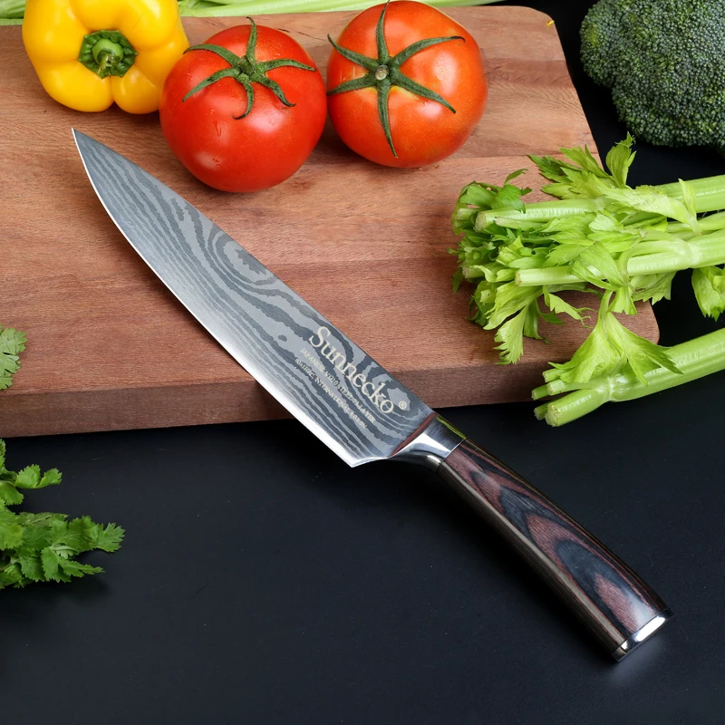 . (0% Rabatt) Kaufen Billig SUNNECKO 8 zoll Kochmesser Japanischen Edelstahl Schleifen Laser Muster Profi koch Messer Scharfe Klinge Kochen Werkzeug Preise Online.