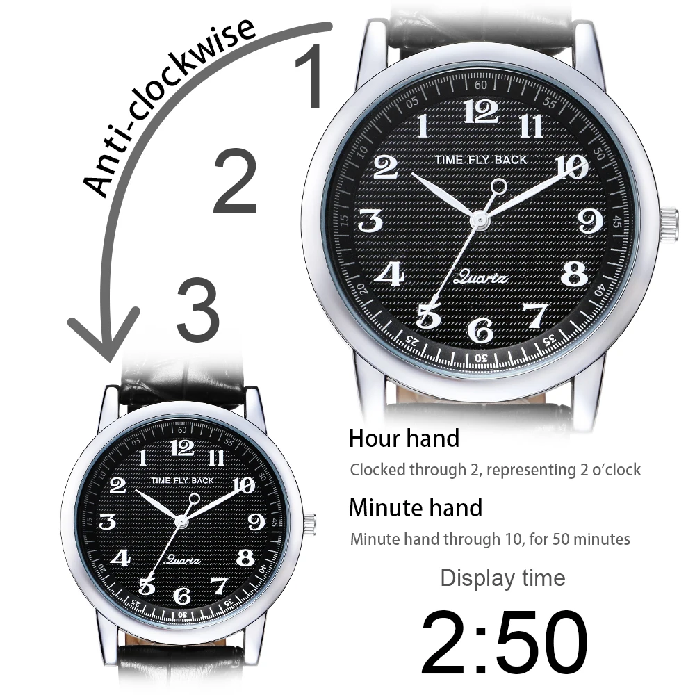 Product Name: Uhr Männer Gegen Quarz Rückwärts Armbanduhr Leder Wasserdichte Reverse Uhr Gegen Den Uhrzeigersinn Junge Studenten Männer Uhr