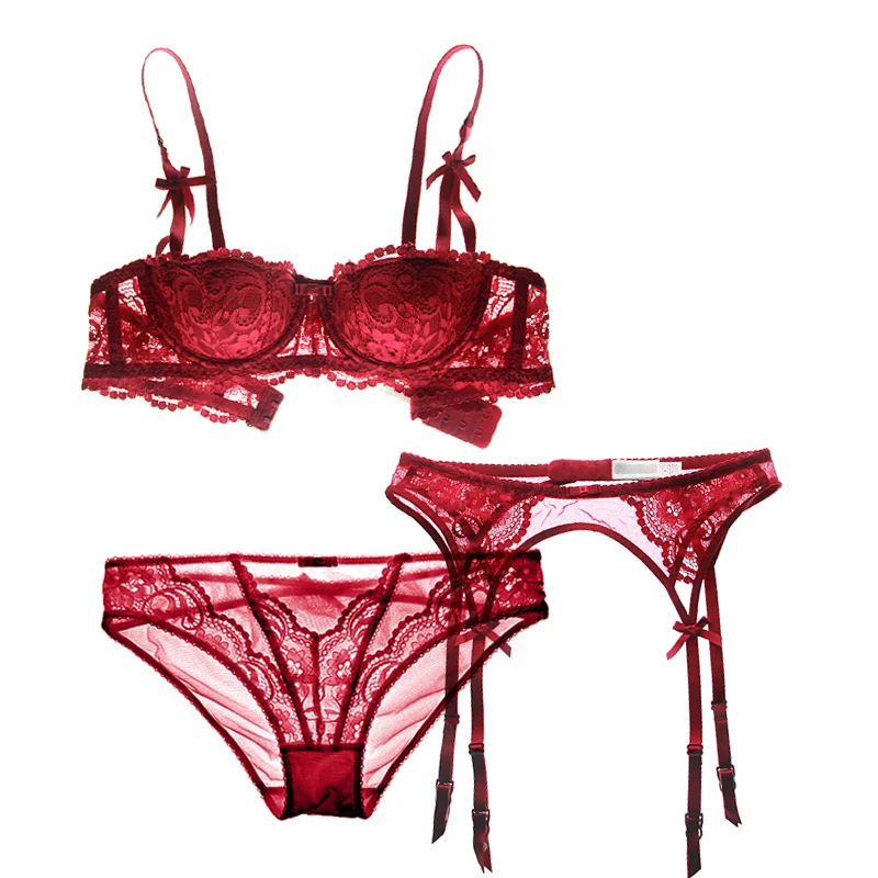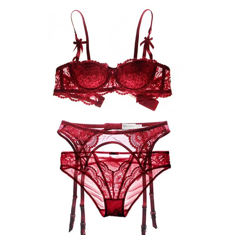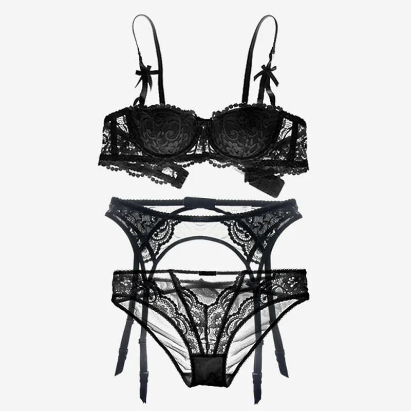 . (38% Rabatt) Kaufen Billig Sexy Mousse halbe Tasse Bh Set lounge Spitze Frauen Unterwäsche tiefe V Schwarz Byusgalter Bh + Transparent höschen + Strumpfbänder set 3 stück Preise Online.