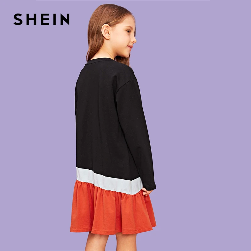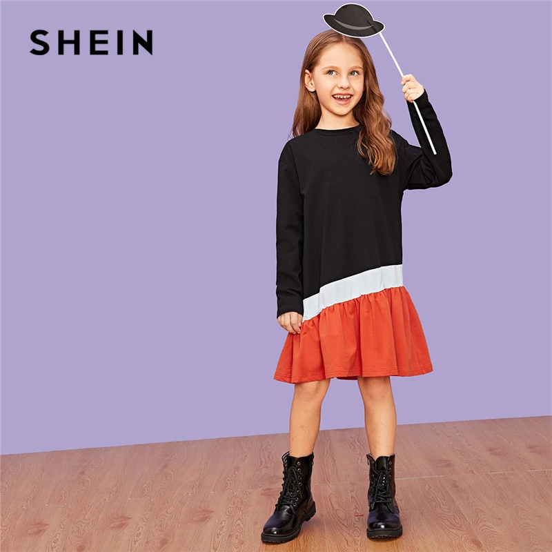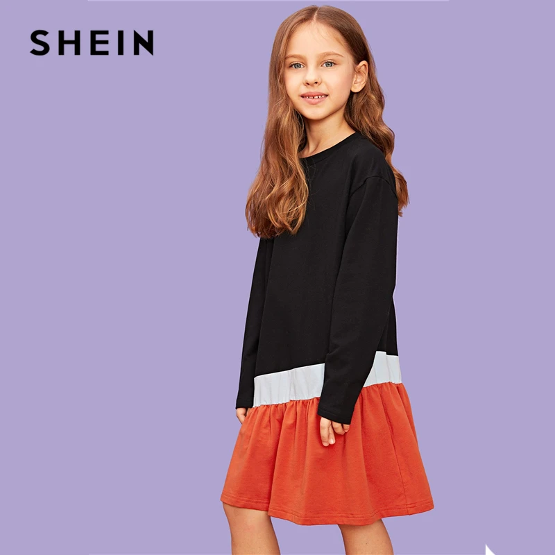 Special Offer SHEIN Kiddie Zuschneiden und Nähen Colorblock Umschalt Partei Mädchen Kleid 2019 Frühling Langarm Casual Midi Kinder Kleider Für Mädchen kleidung Discount 40% Today!