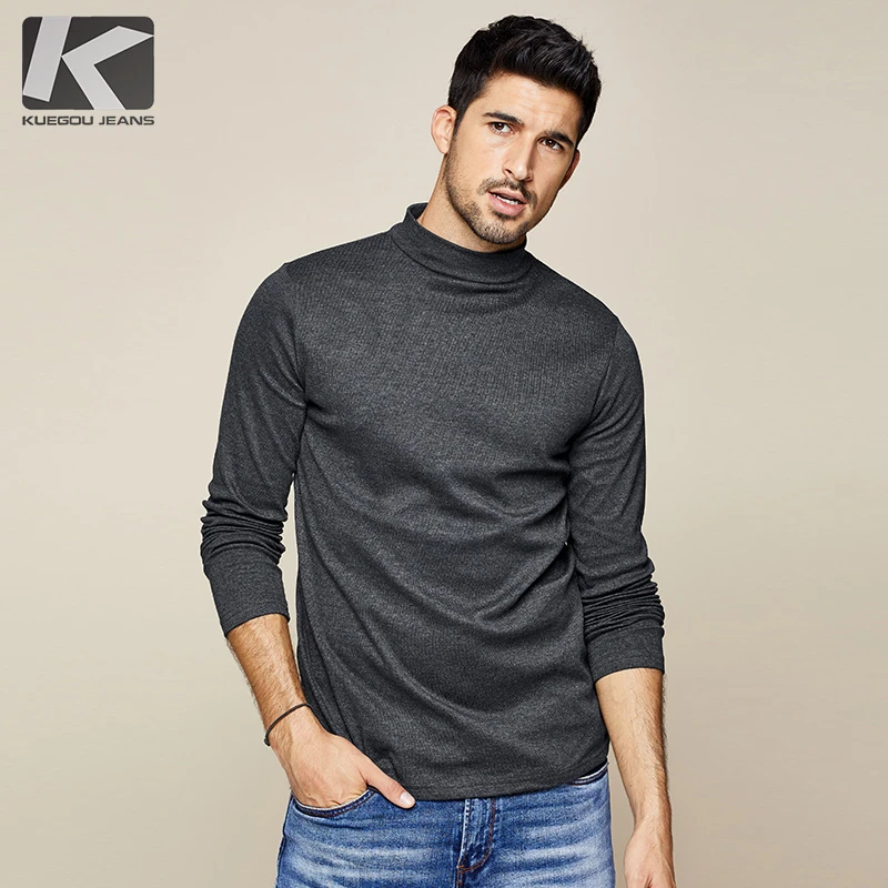 Special Offer KUEGOU 2019 Herbst Baumwolle Plain White T Hemd Männer T shirt Marke T shirt Langarm T Shirt Mode Kleidung Plus Größe top 803 Discount 42% Today!