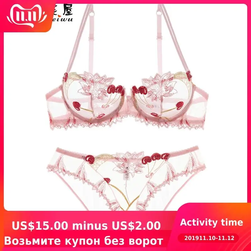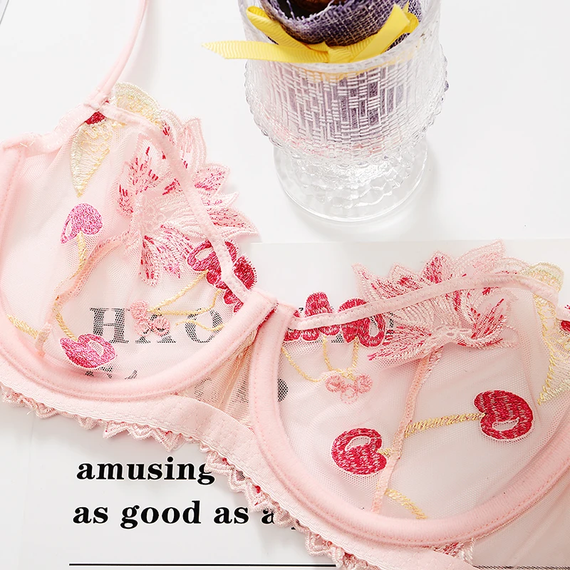 Special Offer Shaonvmeiwu sexy transparent dessous spitze stickerei dünne dünne rosa bh kirsche obst bh anzug Discount 48% Today!
