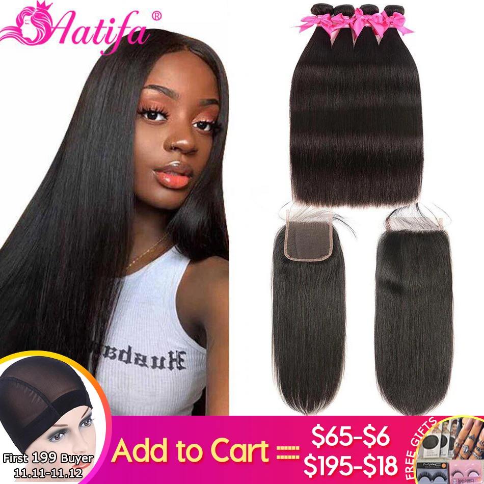 Special Offer Aatifa Brasilianische Gerade Haar Bundles Mit Verschluss Menschliches Haar Bundles Mit Verschluss Remy Bundles Mit Verschluss Haar Verlängerung Discount 51% Today!