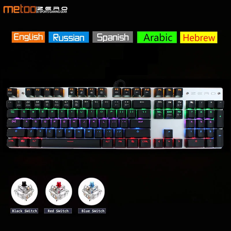 Special Offer Metoo Edition Mechanische Tastatur 87 schlüssel 104 keys Blue Schalter Roten Schalter Gaming Tastaturen für Tablet Desktop Russische aufkleber Discount 59% Today!