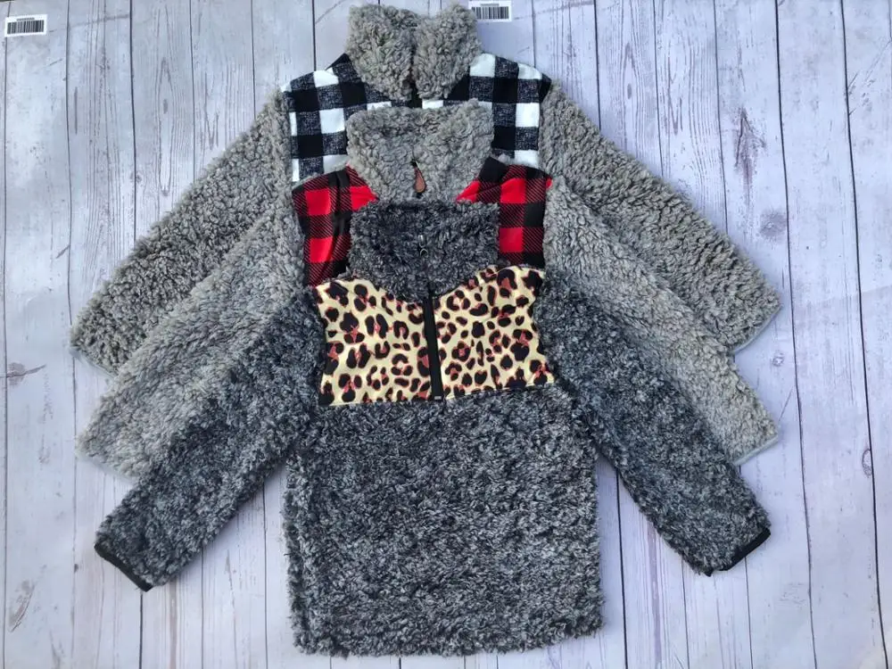 Product Name: RTS TTS Monogramm leopard cheetah buffalo plaid patch KINDER SHERPA pullover jungen mädchen jacken Fleece Jugend Pullover mäntel