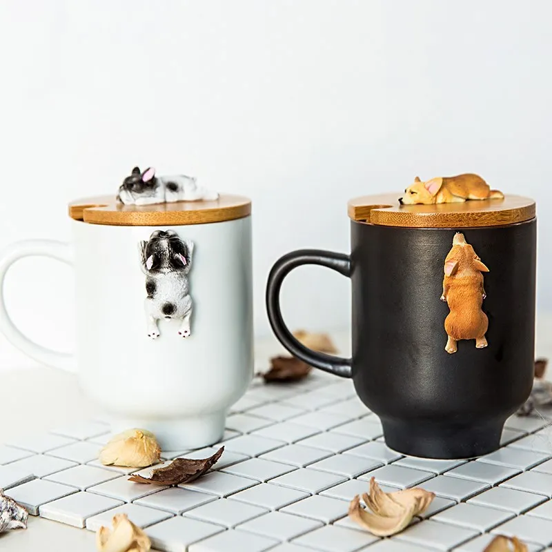 Product Name: Kreative Cartoon 3D Corgi Französisch Bulldog Keramik Tassen Cute Große Kapazität Hund Tassen Student Paar Becher Für Freund Geschenk Tasse