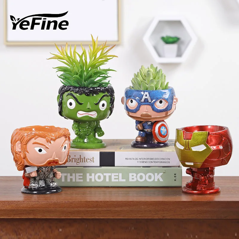 Product Name: YeFine Die Avengers Kreative Harz Bonsai Töpfe Sukkulenten Pflanzer Blumentopf Wohnkultur Artware Home Multifunktionale Blumentopf