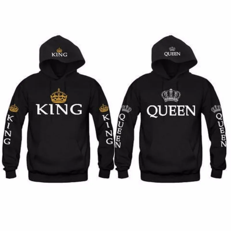 Product Name: Herbst Neue Paar Hoody KÖNIGIN KÖNIG Crown Druck Blau Männer Frauen Hoodie Mode Liebhaber Rot Trendy Sweatshirt Beiläufigen Mit Kapuze