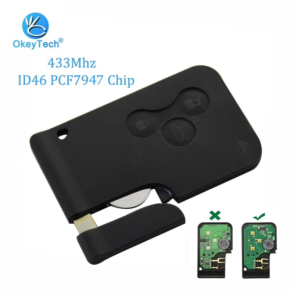 Special Offer OkeyTech 3 Taste 433Mhz ID46 PCF7947 Chip mit Notfall Insert Klinge Smart Remote Key Für Renault Megane Scenic 2003 2008 karte Discount 25% Today!
