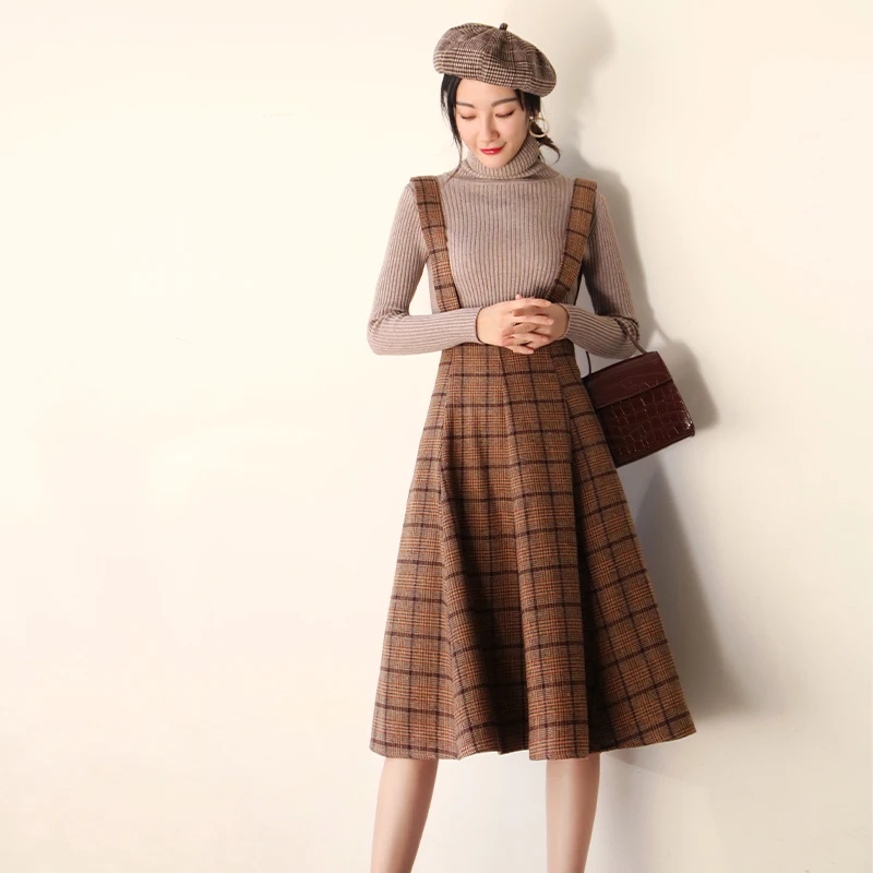 Product Name: Japan Mori Mädchen Sommerkleid Herbst Koreanische Mode Frauen Ärmellose Weste Braun Plaid Woolen Winter Kleider Spaghetti Strap Vestidos