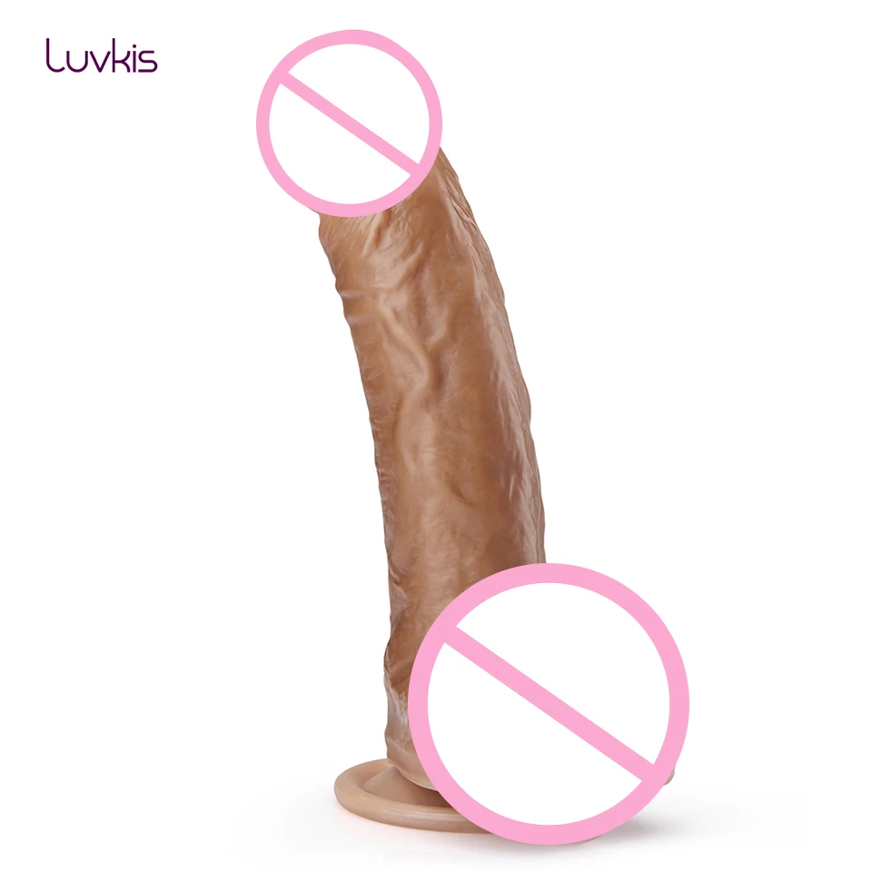 Special Offer Luvkis Realistische 8 Zoll Dual schicht Flüssigen Silikon Biegsamen Penis mit Saugnapf Sex Spielzeug braun Discount 30% Today!