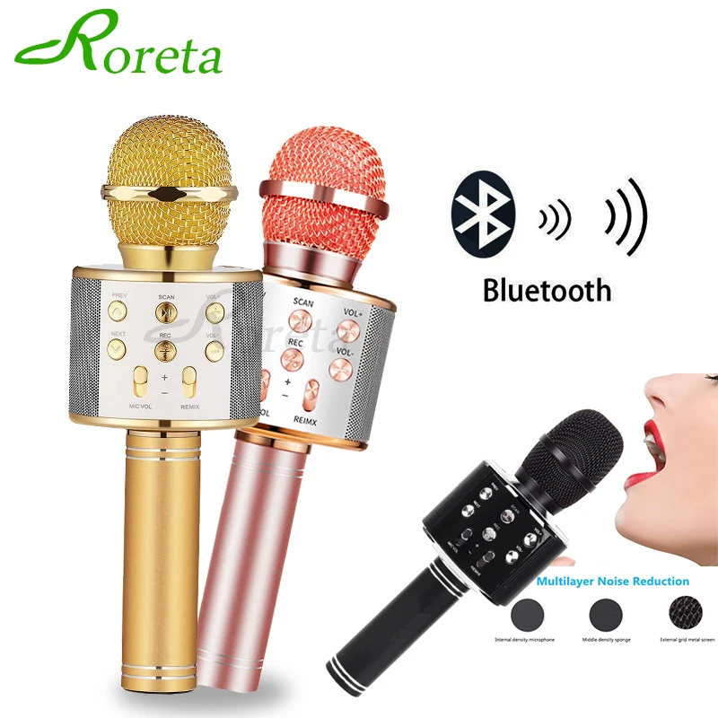 . (33% Rabatt) Kaufen Günstig Roreta WS858 Bluetooth Drahtlose Mikrofon Lautsprecher Professionelle Handheld Karaoke Mic Musik Player Singen Recorder KTV Mic Preise Online.