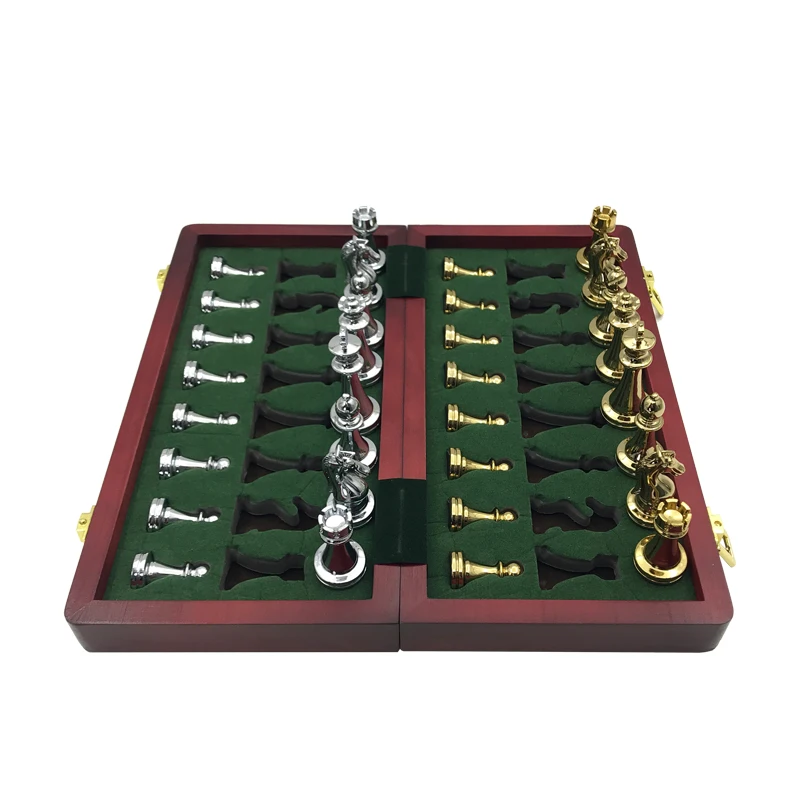 . (37% Rabatt) Kaufen Billig Easytoday Metall Glänzend Golden Und Silber Schach Stück Massivem Holz Klapp Schachbrett Hohe Grade Professional Schach Spiele Gesetzt Preise Online.