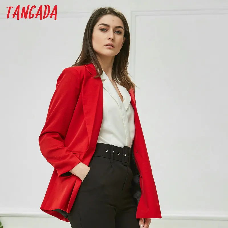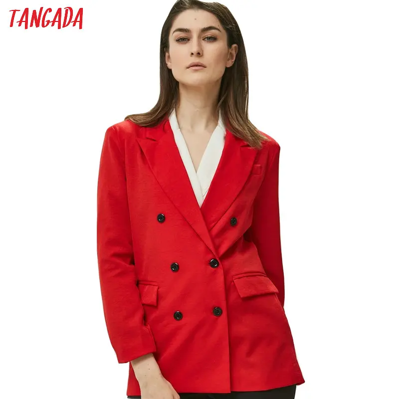 Special Offer Tangada Frauen Roten Anzug Jacke Formale Blazer 2019 Zweireiher Tasche Frauen Blazer Arbeit Büro Business Anzug Outwear SX01 Discount 38% Today!