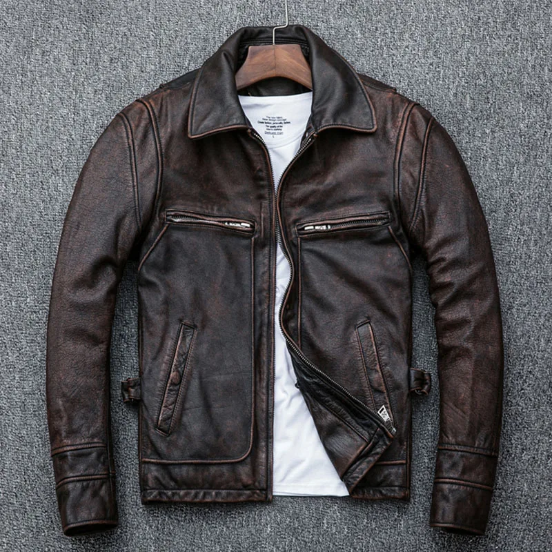 Product Name: MAPLESTEED Marke Amekaji Motor Biker Stil Männer Leder Jacke Schwarz Rot Braun Rindsleder Vintage Jacken Männer Winter Mantel 5XL M100