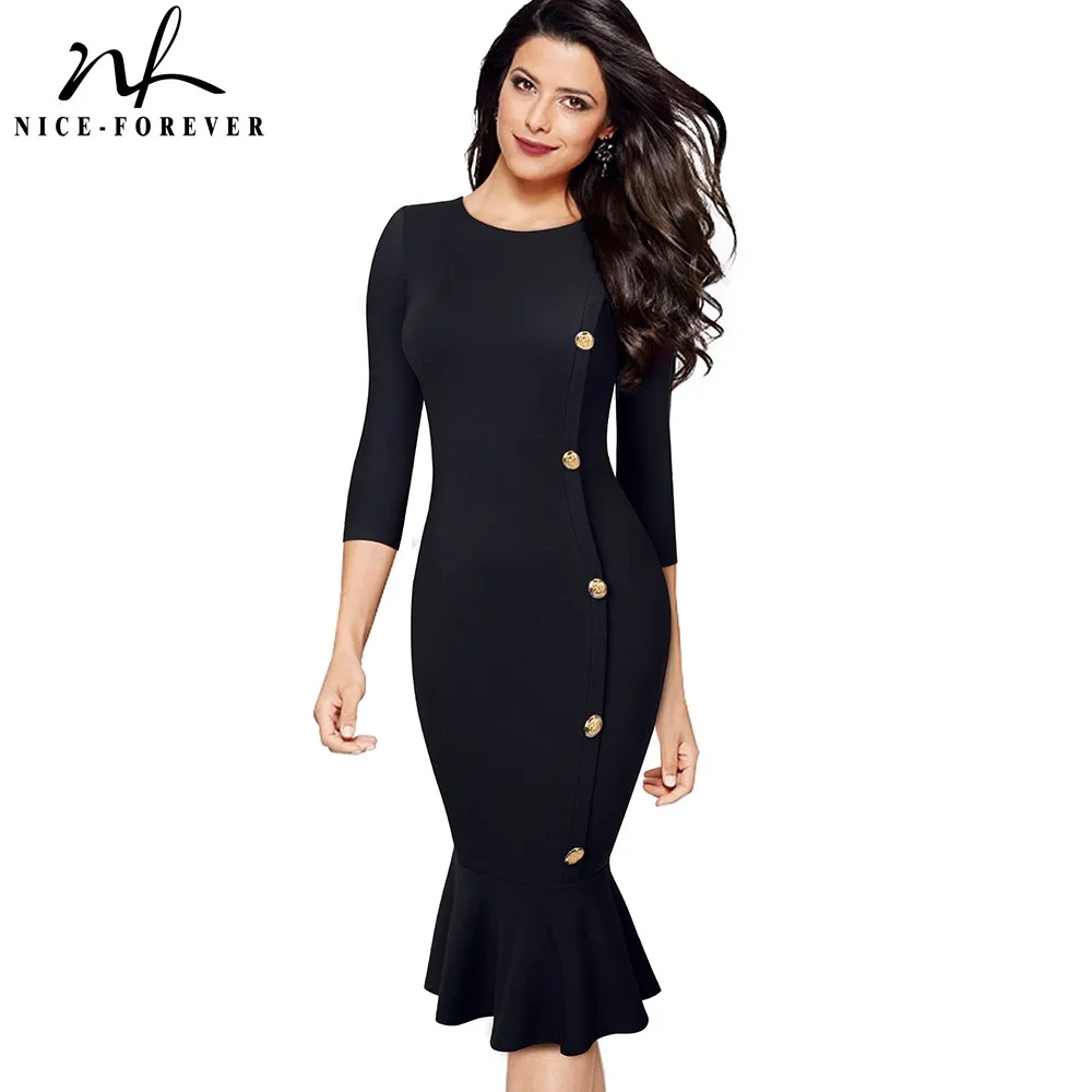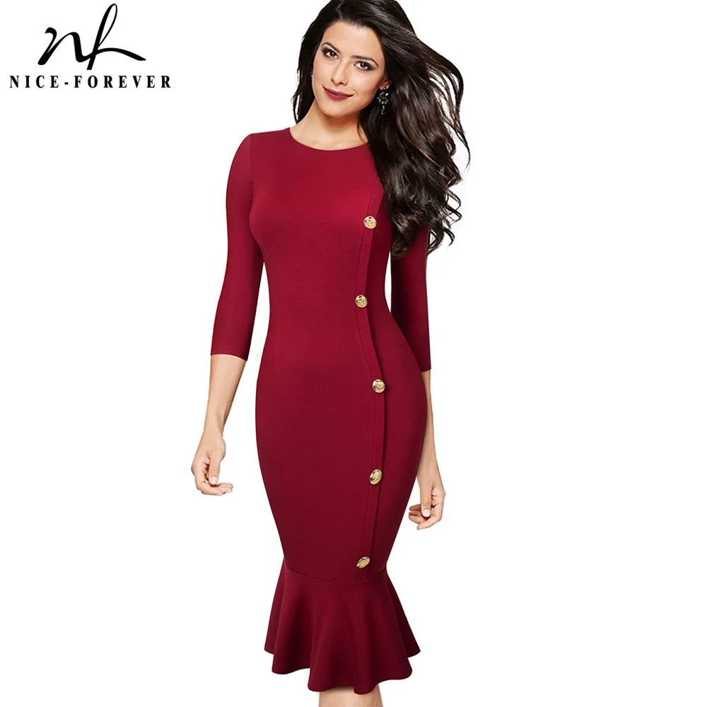 Special Offer Nizza immer Elegant Vintage Reine Farbe Arbeit Meerjungfrau Taste vestidos Business Party Büro Bodycon Mantel Frauen Kleid B492 Discount 41% Today!