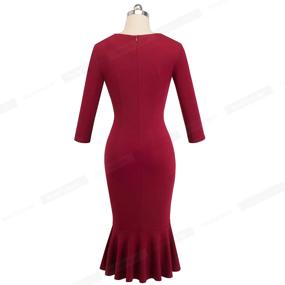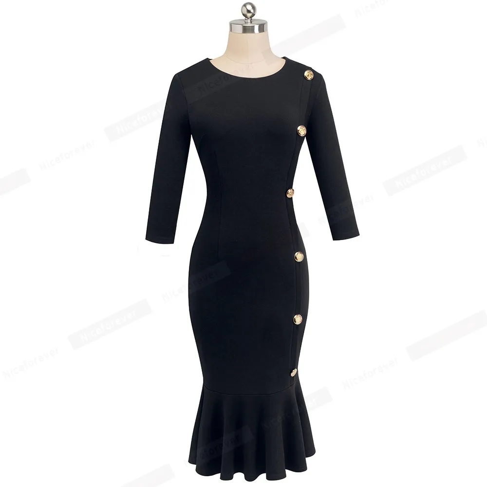 Product Name: Nizza immer Elegant Vintage Reine Farbe Arbeit Meerjungfrau Taste vestidos Business Party Büro Bodycon Mantel Frauen Kleid B492