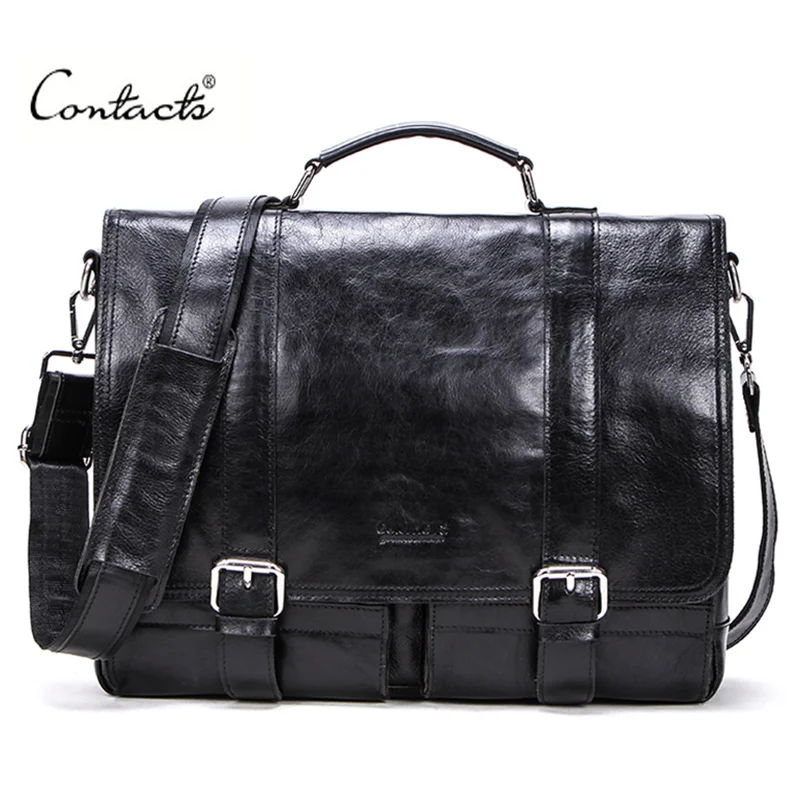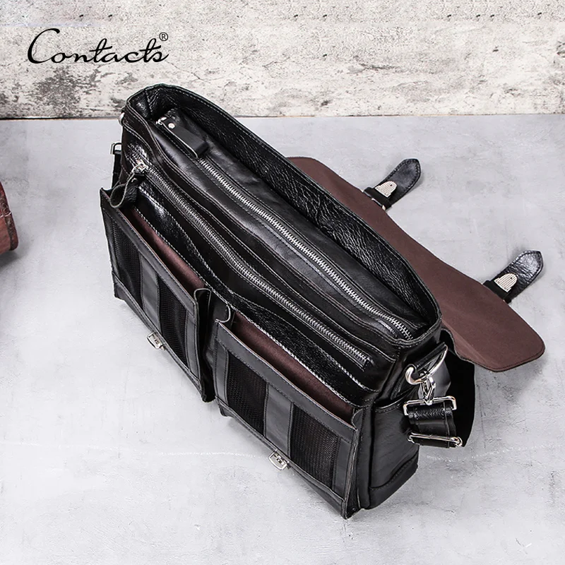 Special Offer CONTACT S gemüse leder männer aktentasche für anwälte 13 zoll laptop handtasche ipad große vintage business männlich umhängetasche Schwarz Discount 45% Today!