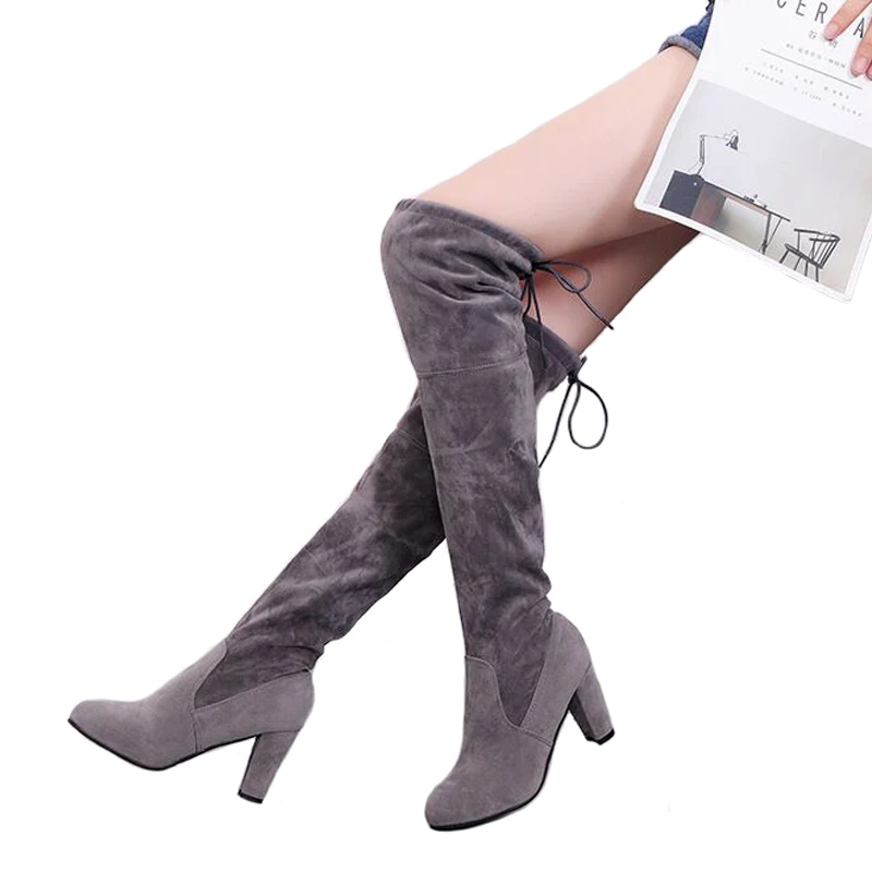 Product Name: Faux Wildleder Dünne Über die knie Stiefel Winter Frauen Stiefel Sexy Oberschenkel Hohe Stiefel Weibliche Wies Hohe stiefel Plus Größe 44 Schuhe