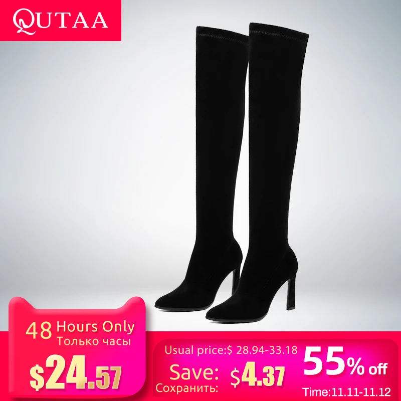 Special Offer QUTAA 2020 Hohe Ferse Lange Frauen Stiefel Herbst Mode Frauen Schuhe Sexy Spitz Winter Über Die Knie Frau Stiefel größe 34 43 Discount 47% Today!