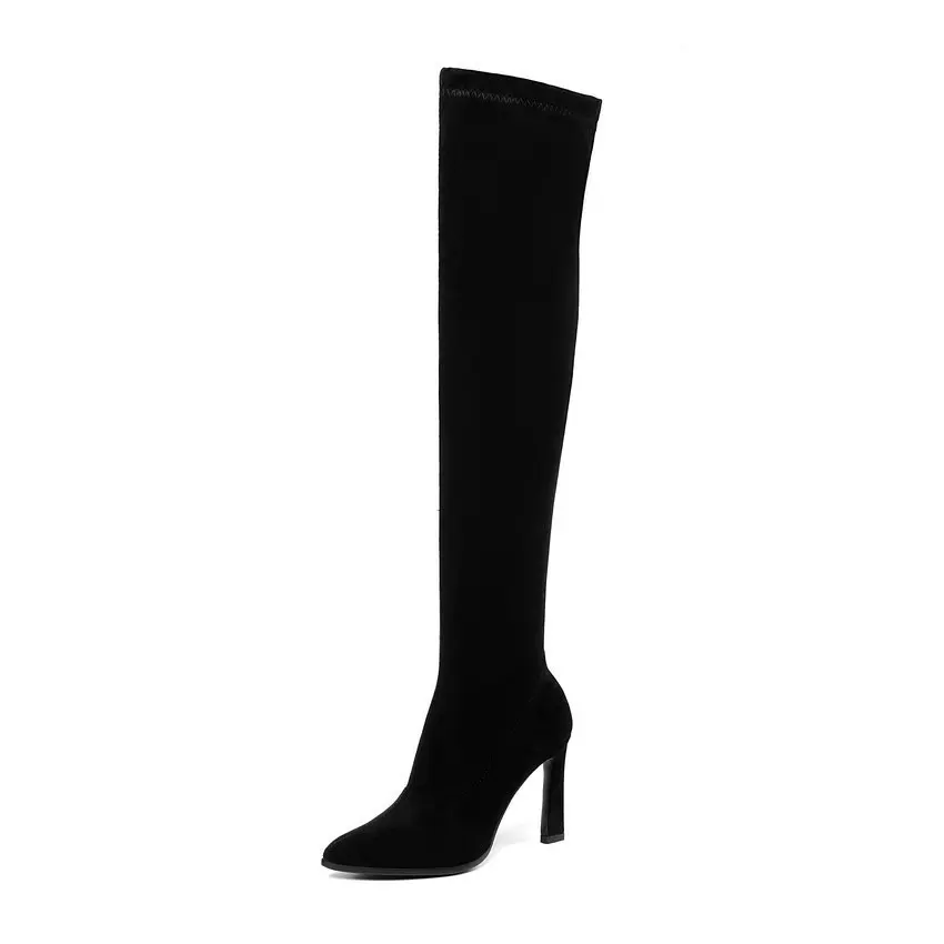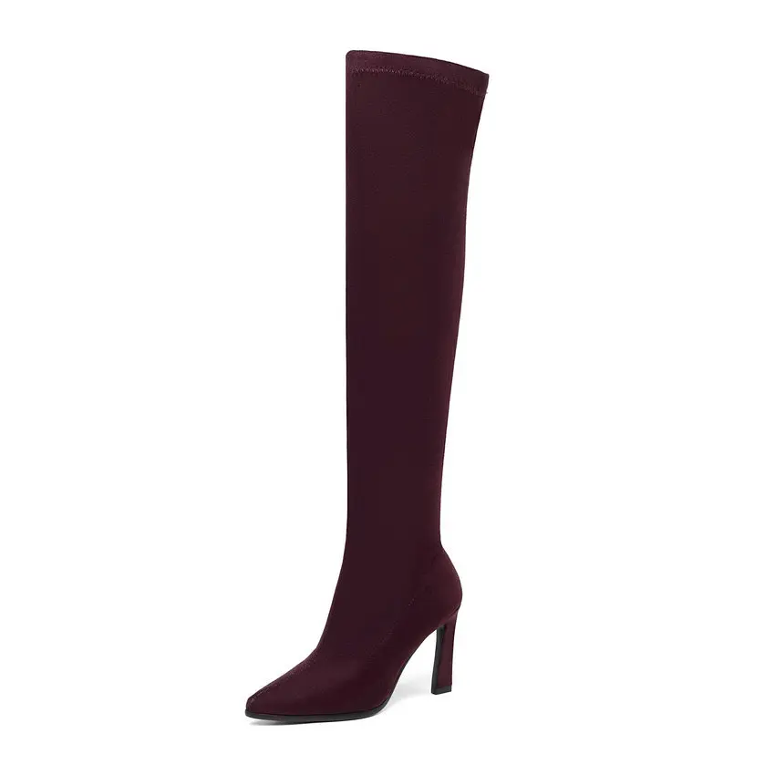 Product Name: QUTAA 2020 Hohe Ferse Lange Frauen Stiefel Herbst Mode Frauen Schuhe Sexy Spitz Winter Über Die Knie Frau Stiefel größe 34 43