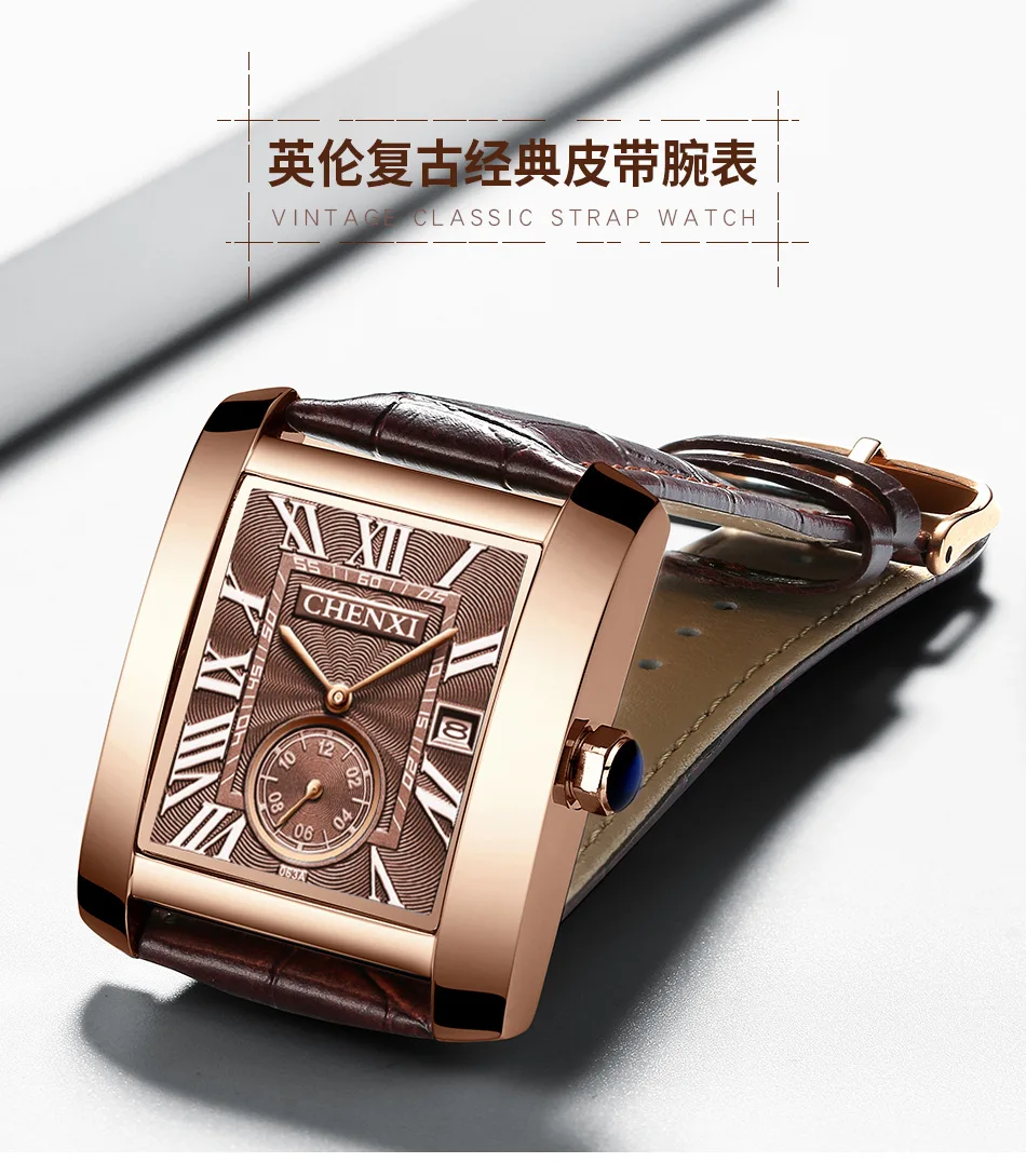 Product Name: Fashion Square Uhr Männer Luxus Marke Quarz Wasserdichte Business Leder Armbanduhr Männer Uhr Männlich Relogio Masculino