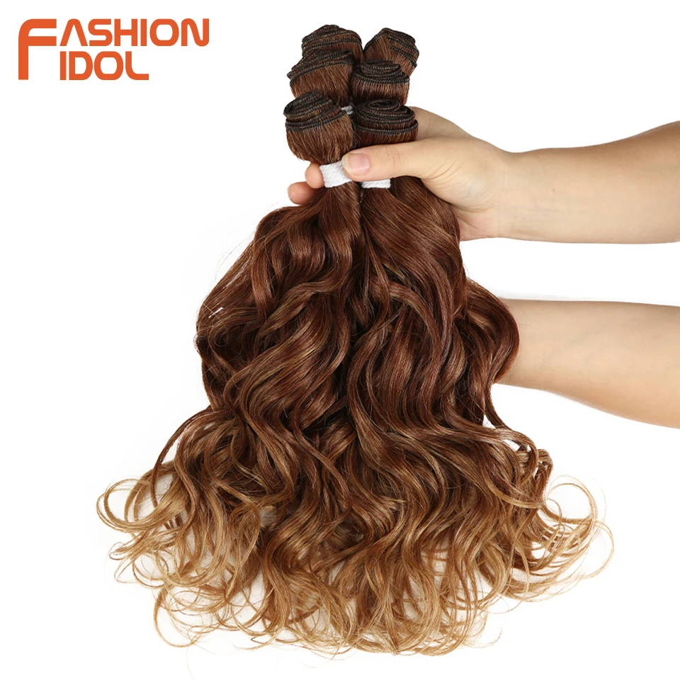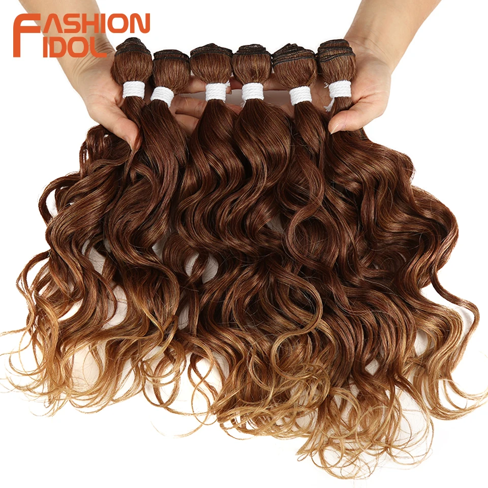 Product Name: MODE IDOL Tiefe Welle Bundles Haarwebart Bundles Ombre Braun 6 Stück 16 20 Inch 250g Synthetische Haar extensions Kostenloser Versand