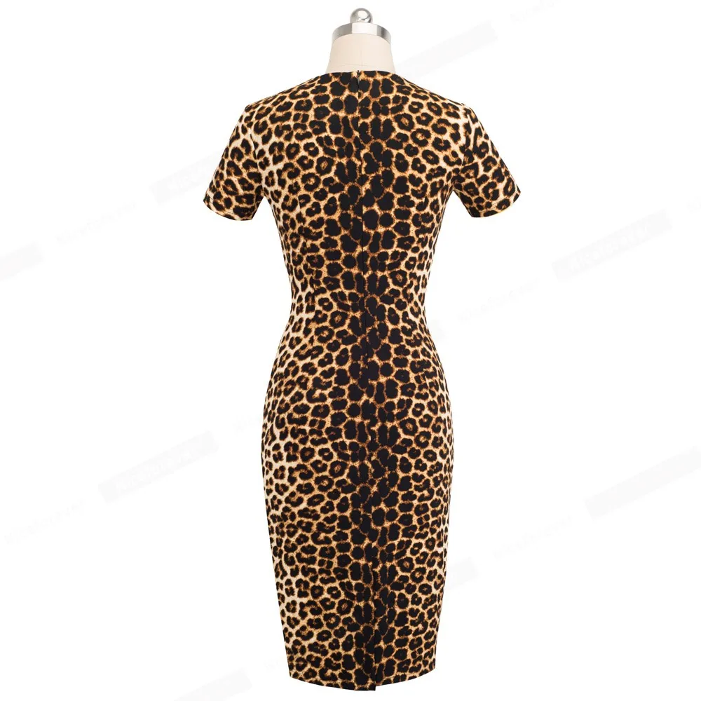 Product Name: Nizza für immer Vintage Optische Illusion Leopard Farbe Block Arbeit vestidos Business Party Bodycon Büro Mantel Frauen Kleid B498