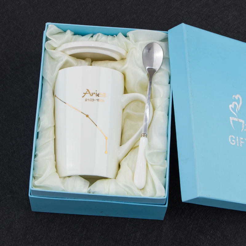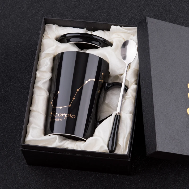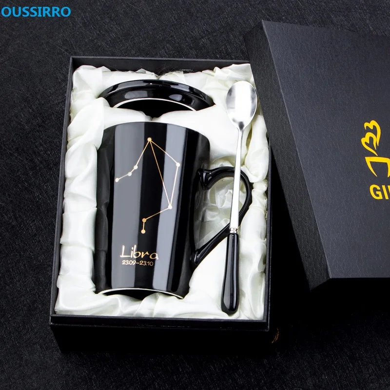 Special Offer OUSSIRRO 420 ml Keramik Kaffee Becher Konstellation Thema Glück Becher Mit Geschenk Box mit Deckel und Löffel Weihnachten Geschenk für freunde Discount 10% Today!