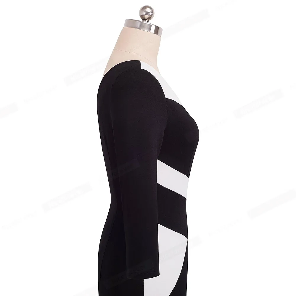Product Name: Nice immer Elegant Optische Täuschung ColorBlock Tragen zu Arbeiten vestidos Bodycon Frauen Office Business Mantel Dünnes Kleid B411