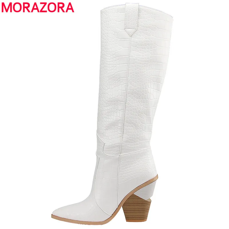 Special Offer 7 farben 2019 Neue Marke frauen stiefel spitz dicken high heels knie hohe stiefel herbst winter schuhe slip auf sexy damen schuhe Discount 48% Today!