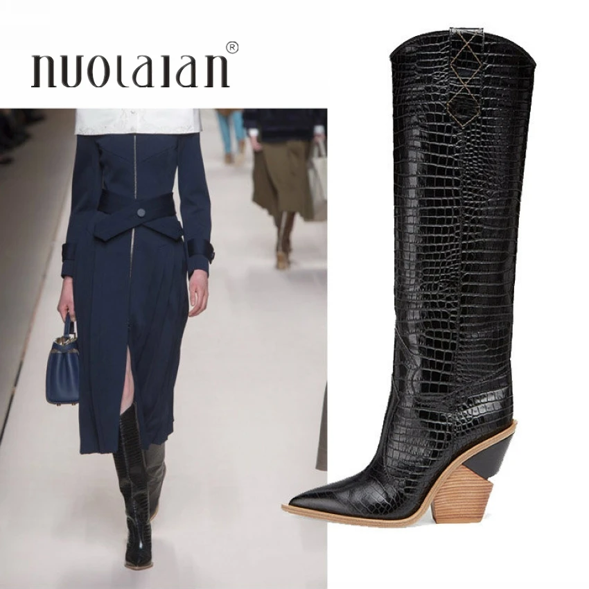 Special Offer 9,5 CM High Heels Oberschenkel hohe Stiefel Schuhe Frauen Faux Pelz Schnee Schuh Frau Schwarz Leder Knie Hohe Stiefel Lange winter Chelsea Stiefel Discount 45% Today!