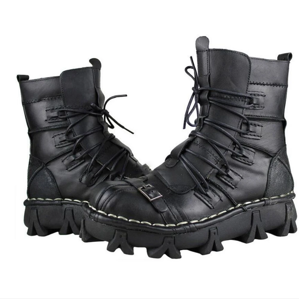 Special Offer Männer Echte Leder Schädel Gothic Punk Rocker Stiefel Motorrad Stiefel Discount 0% Today!