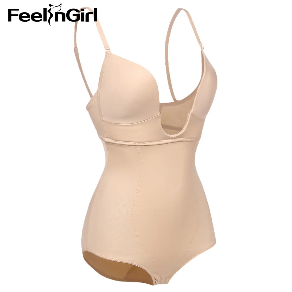 Special Offer FeelinGirl Frauen Full Body Shaper Backless Tanga Nahtlose Push up Abnehmen Body Tiefe U Plunge Sexy Unsichtbare Shaperwear 261C Discount 25% Today!