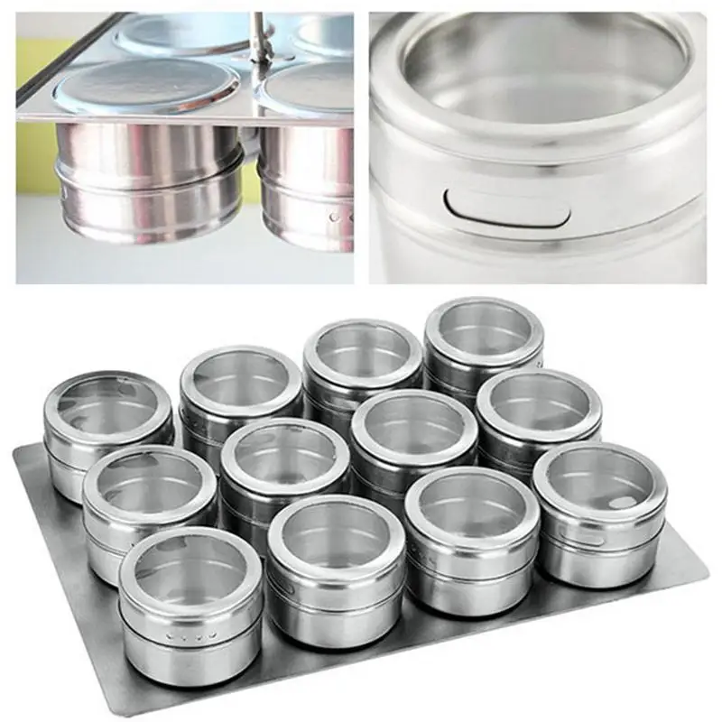 Product Name: Magnetische Staubdicht Sichtbar Edelstahl Gewürz Glas Gewürz Gewürz Flasche Im Freien Grill Gewürz Box Set