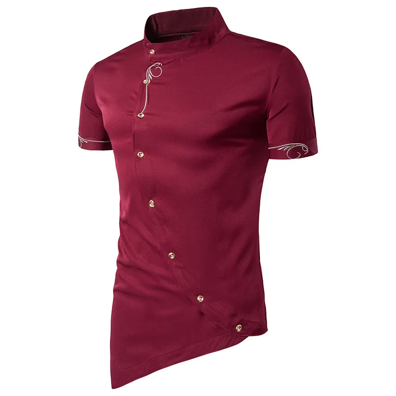 Special Offer FFXZSJ Marke männer der sommer 2019 stand up kurzen ärmeln hemd, bestickt slant vorderseite casual hemd Europäischen größe Fehlschlag 100 128 Discount 29% Today!
