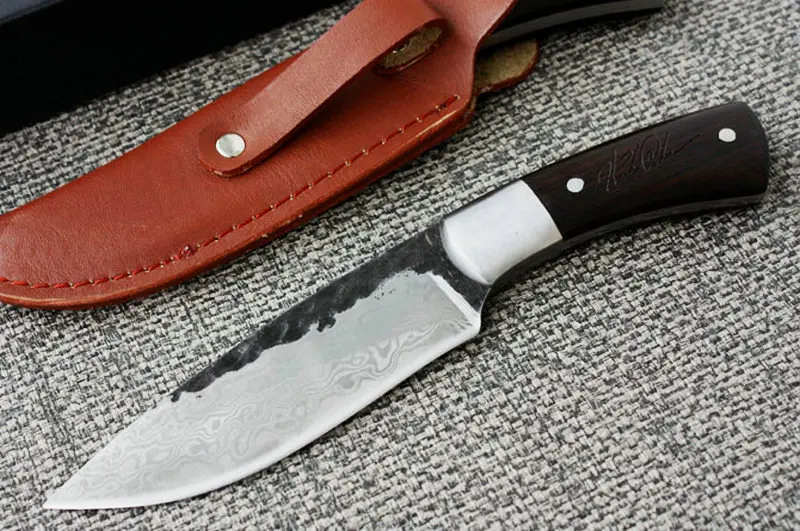 Product Name: VOLIRON Taktische Feste Messer High carbon Stahl Damaskus muster Messer Handgemachte camping Jagd Messer EDC werkzeuge Freeshipping