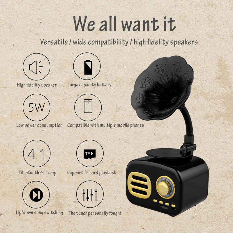 Special Offer Retro phonographen wireless Freisprechen FM Radio Lautsprecher tragbare boombox subwoofer bluetooth lautsprecher caixa de som altavoF4045A Discount 42% Today!