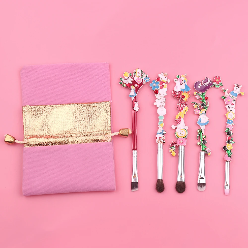 . (45% Rabatt) Kaufen Günstig Luxus 5 teile satz Make Up Pinsel Set Alice im Wunderland Wald Garten Anlage Kosmetische Pro Foundation Make Up Pinsel Tool Kit Preise Online.