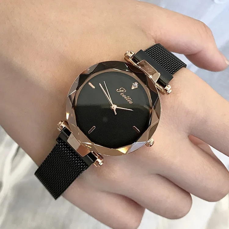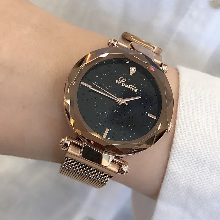 Product Name: 2019 luxus Marke dame Kristall Uhr Magnet schnalle Frauen Kleid Uhr Mode Quarz Uhr Weibliche Edelstahl Armbanduhren