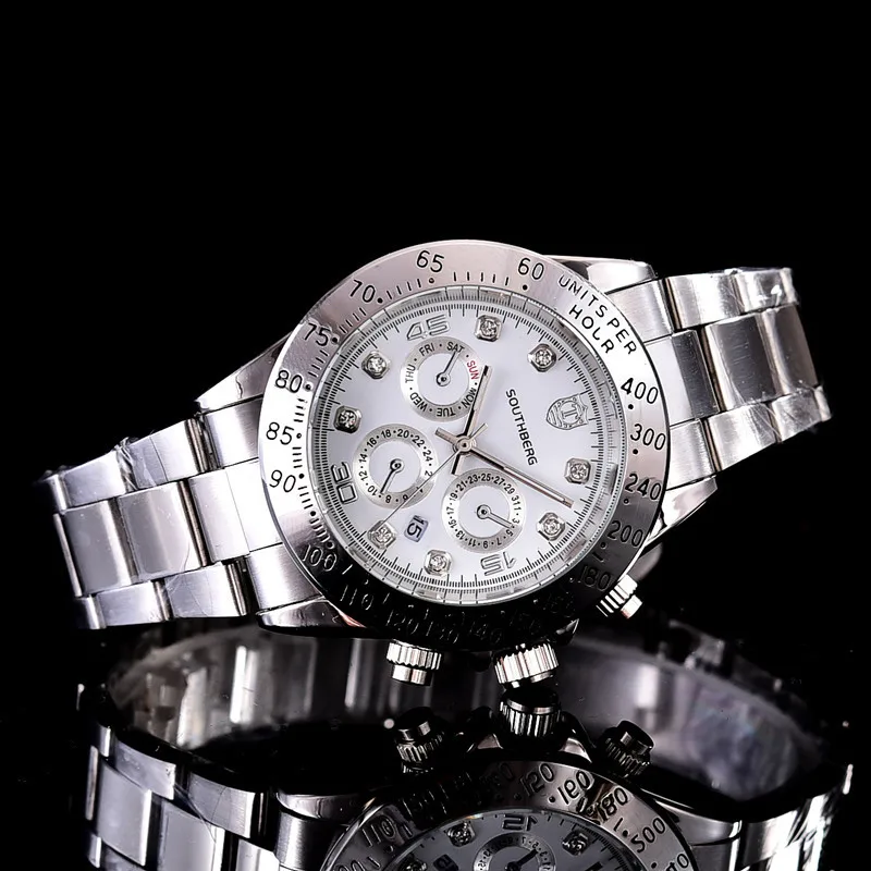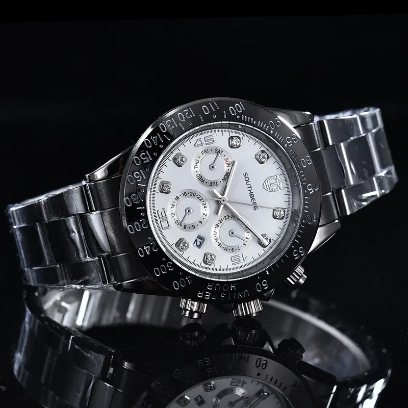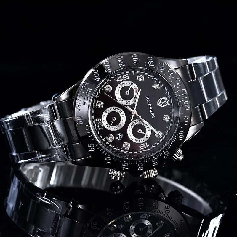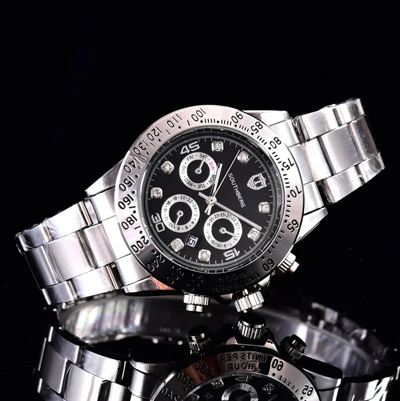 Product Name: 2017 SOUTHBERG GMT Luxus Marke daytona Uhr Männer Casual Männlichen Uhren Business Sports Military Edelstahl Uhr
