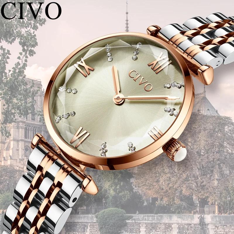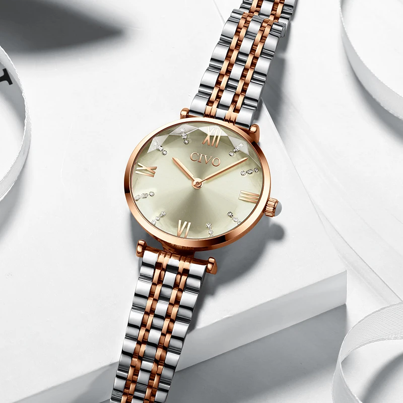 Product Name: CIVO 2019 Mode Luxus Damen Handgelenk Uhren Top Marke Rose Gold Stahl Armband Wasserdicht frauen Armband Uhr Zegarek Damski