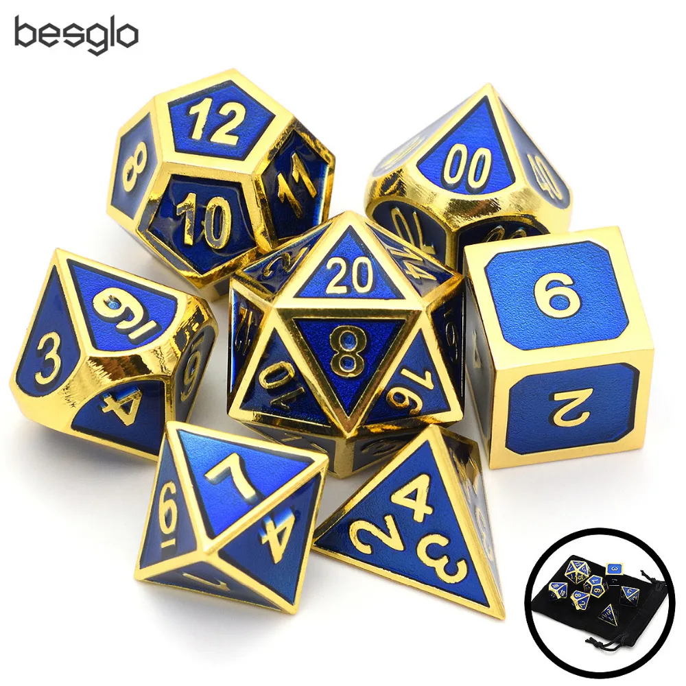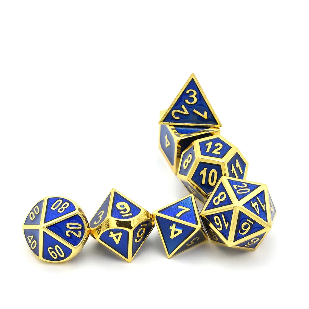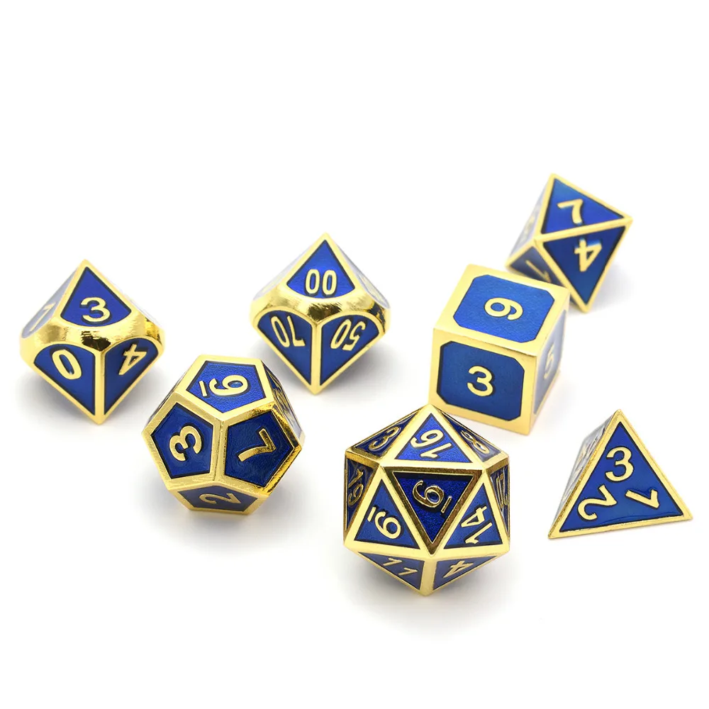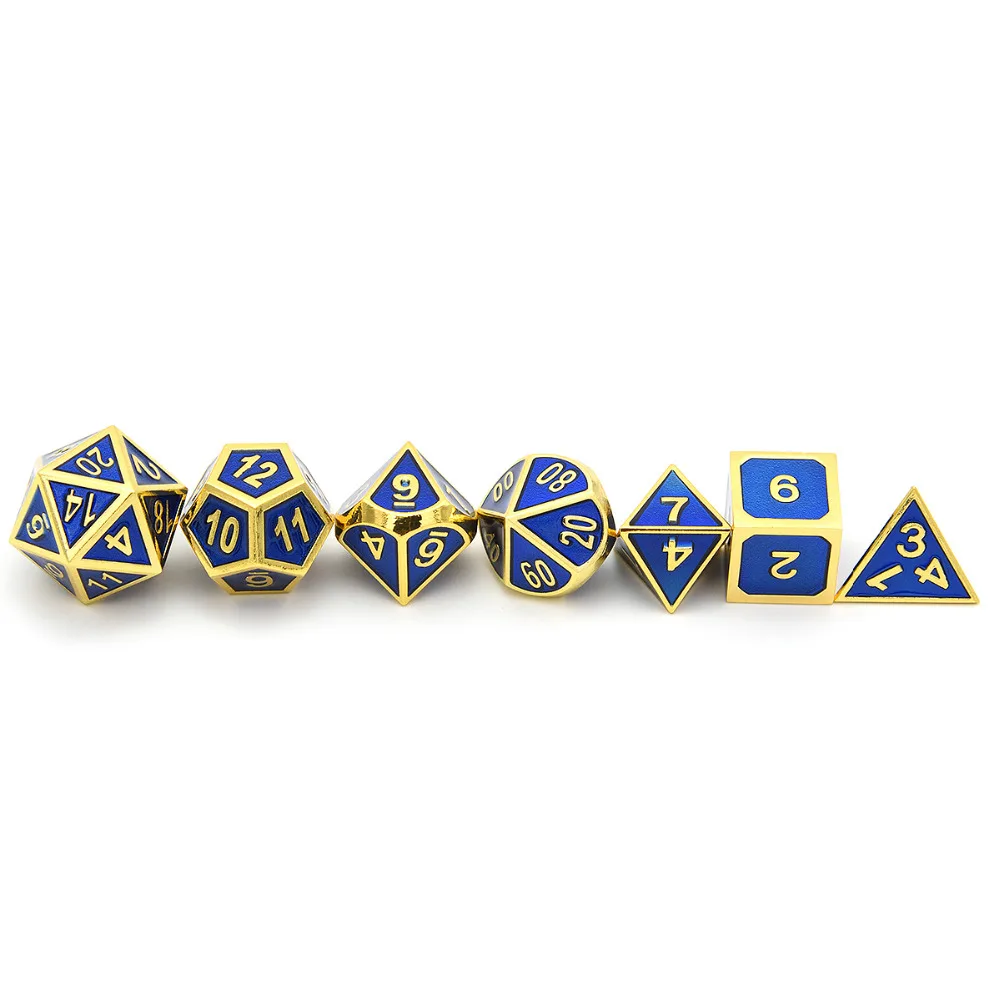 Special Offer Set von 7 Metall Würfel Shiny Gold Finish mit Royal Blue Emaille Farbe für RPG DND MTG Tabelle Spiele Discount 0% Today!