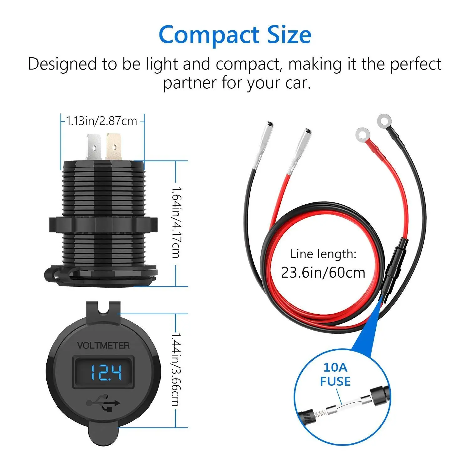 Product Name: 12 V 24 V Schnell Ladegerät 3,0 QC3.0 Wasserdicht Dual USB Auto Ladegerät Voltmeter 60cm kabel 10A SICHERUNG für Auto Boot Motorrad Lkw Golf