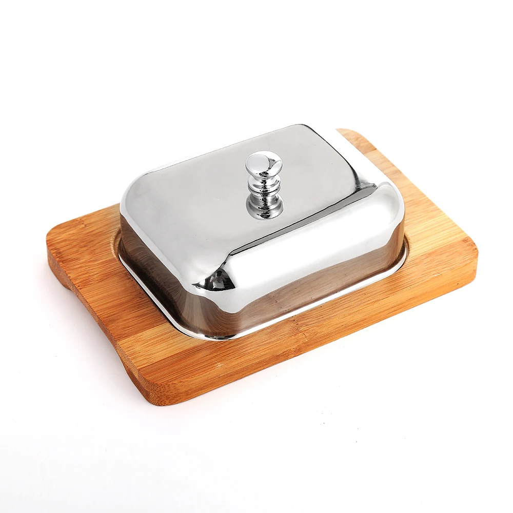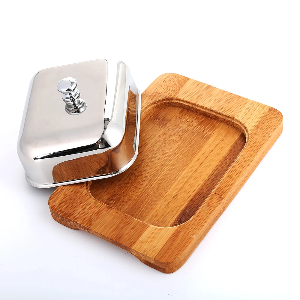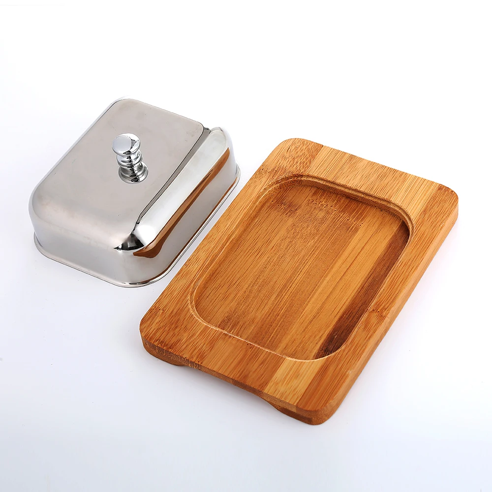 Special Offer Realand Eco freundliche Edelstahl Butter Gericht Box Container Käse Server Lagerung Keeper Bambus Tablett mit spiegel finish Deckel Discount 41% Today!