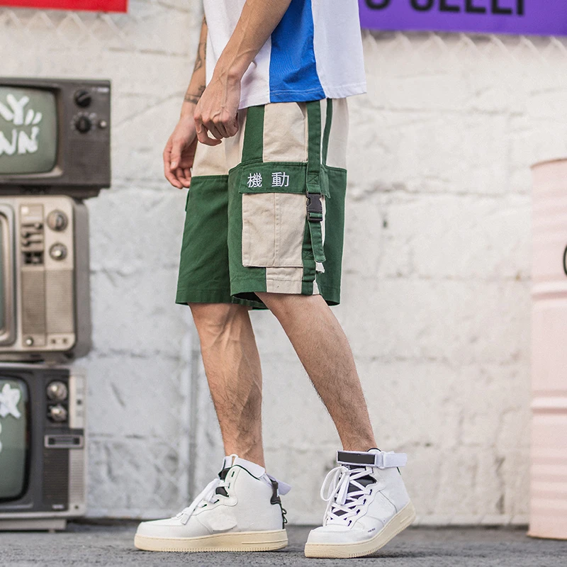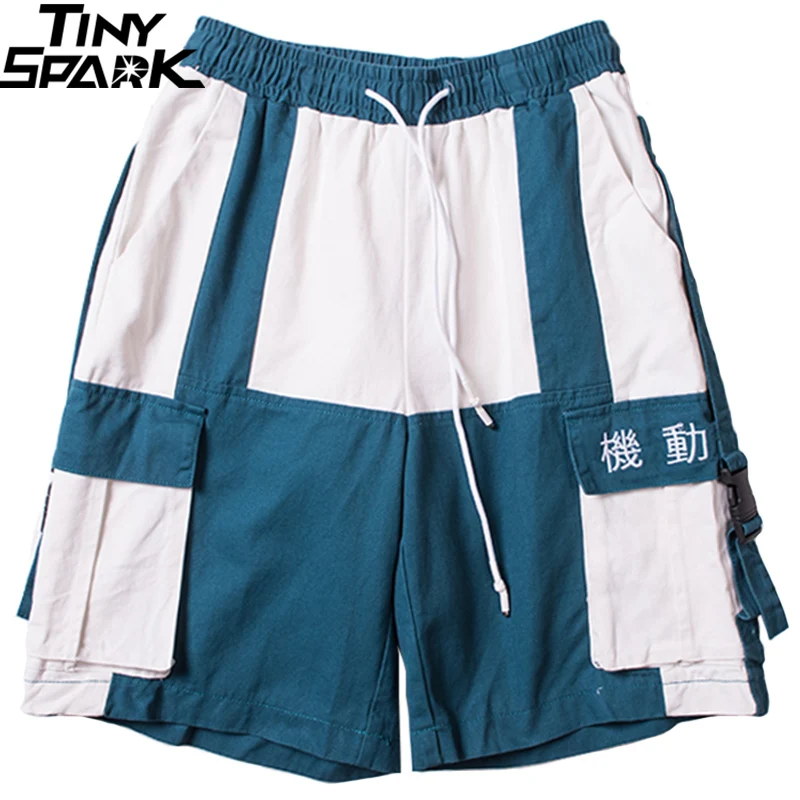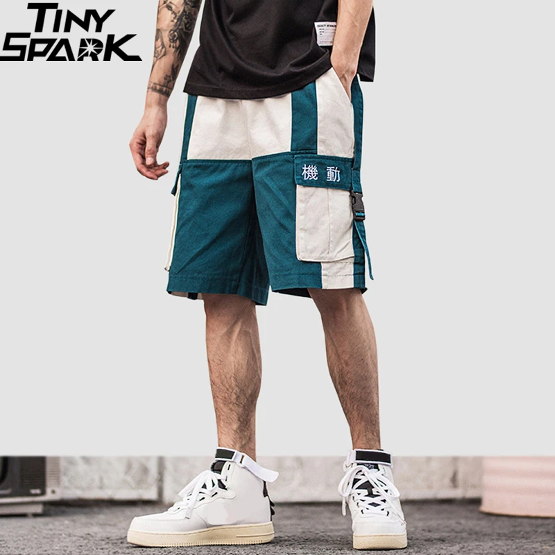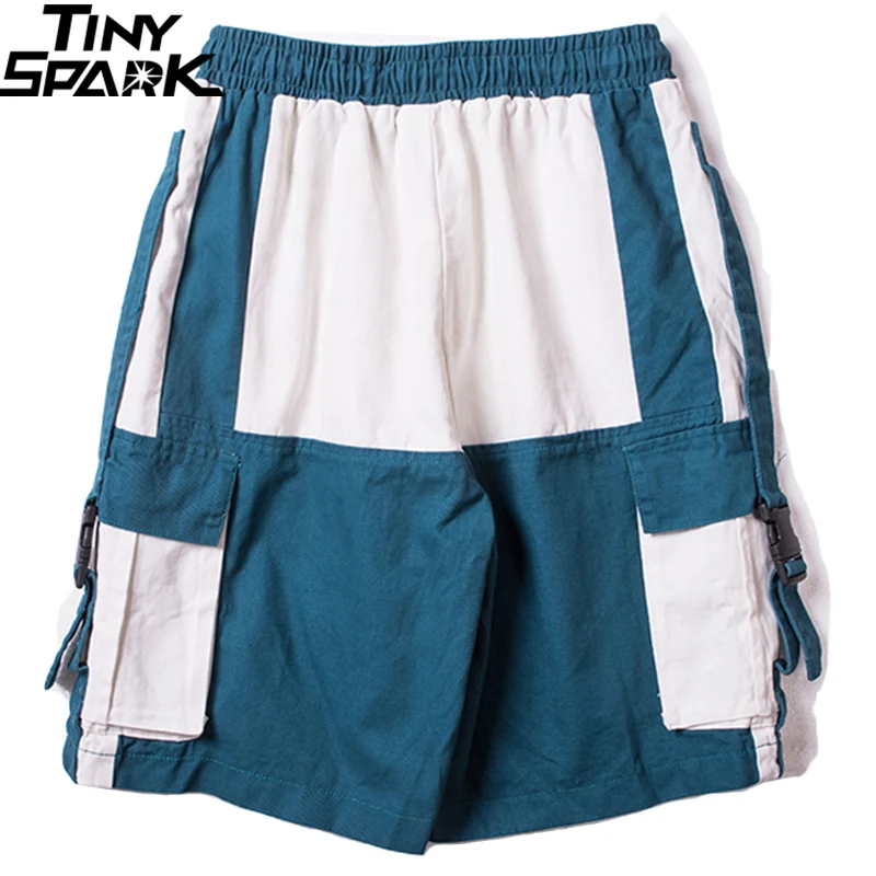 Product Name: 2019 Harajuku Shorts Farbe Block Sommer Hip Hop Cargo Short Streetwear Männer Jogger Kurze Taschen Baumwolle Casual Sweatpant HipHop