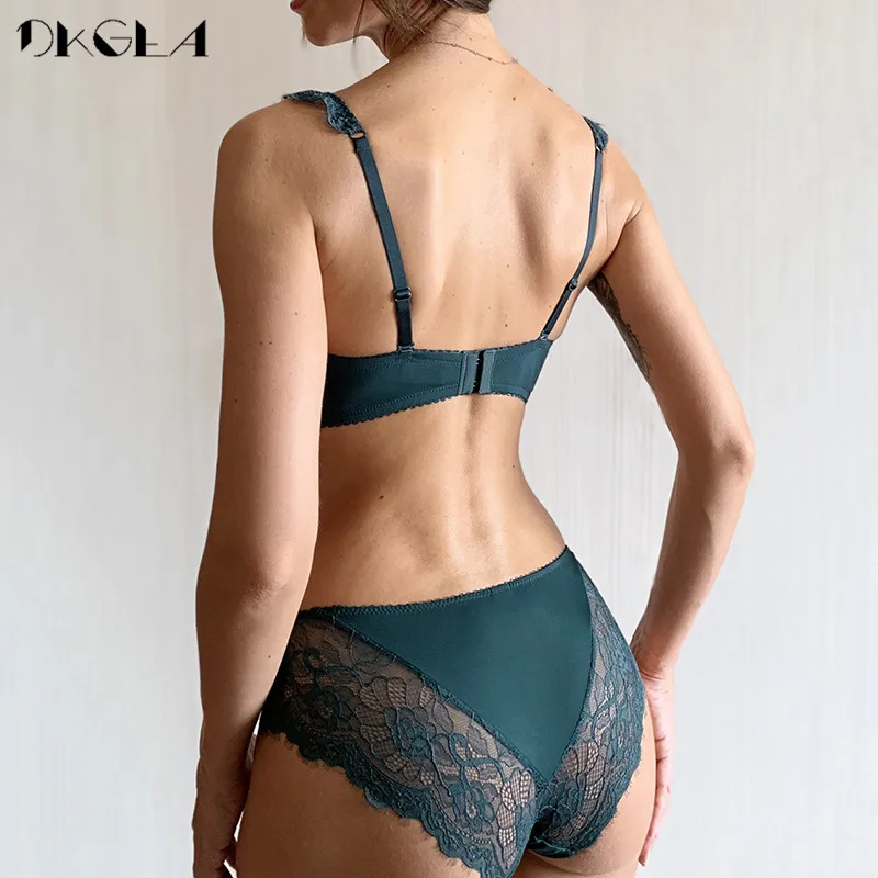 Special Offer Neue Mode Grün Büstenhalter Tiefen V Push Up Bh Set Dicker Baumwolle A B C Tasse Frauen Bhs Dessous Set spitze Sexy Unterwäsche Schwarz Discount 45% Today!