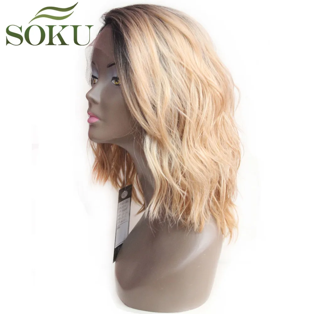 Product Name: SOKU Synthetische Spitze Front Perücken Ombre Blonde Natürliche Welle Kurze Bob Perücken Schulter Länge Tiefe Unsichtbare Seite L Teil Perücke für Frauen
